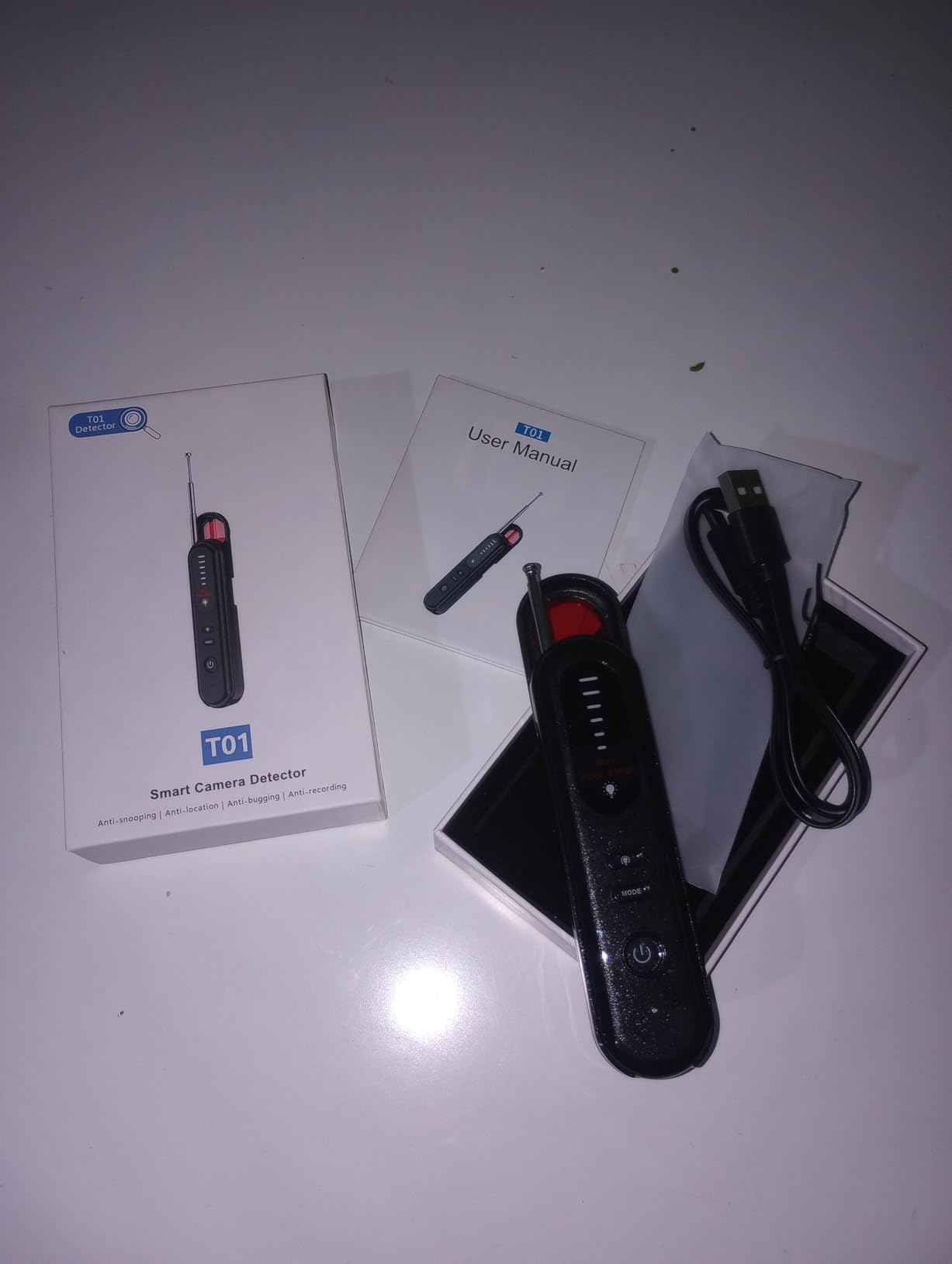2. Detector de lentes ocultos con LED rojo para encontrar lentes de cámara, incluso en objetos comunes.