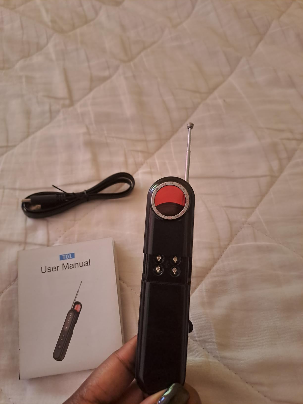 Viajo constantemente por trabajo y suelo quedarme en Airbnb. Desde que lo tengo lo uso antes de desempacar y me da una tranquilidad enorme. Hace poco detectó una señal en un enchufe que parecía normal. ¡No me imaginaba lo que podía haber allí! Es fácil de usar y la batería dura bastante. Lo recomiendo a cualquiera que valore su privacidad.