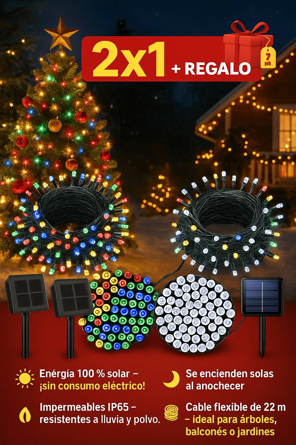 Compra 1 set de Luces Navideñas Solares y recibe 2 unidades por el precio de 1 🤩